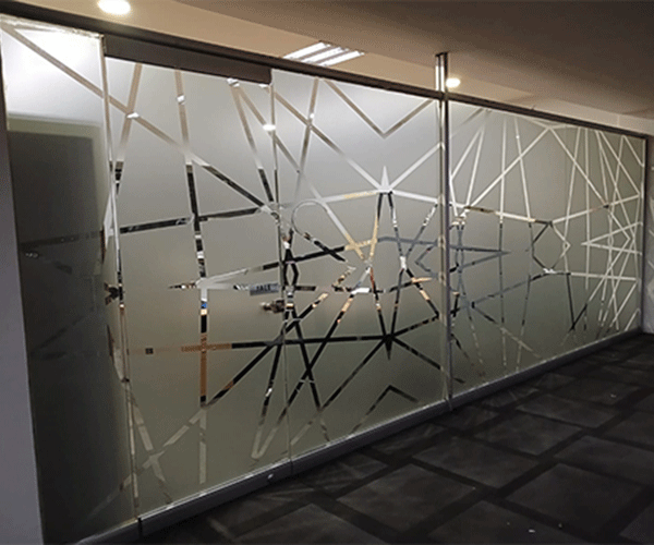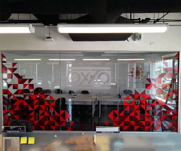 Ofrece un acabado elegante y traslúcido que brinda privacidad sin perder luminosidad. Es ideal para oficinas y salas de juntas, y puede personalizarse con cortes o impresiones para formar logotipos, diseños o patrones decorativos.